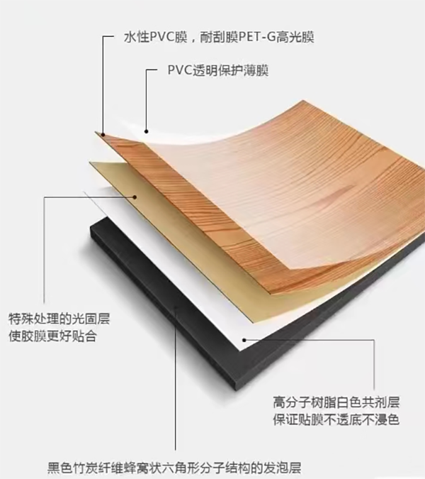 3、光固粘合层:通过光固化技术,实现板材与膜材的无缝粘合,确保结构稳固。