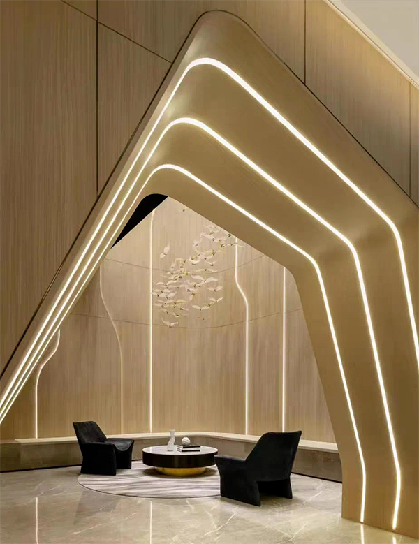板材可自由裁切、开槽折弯,适用于墙面包角、装饰柱、异形造型等场景,拓展设计可能性。