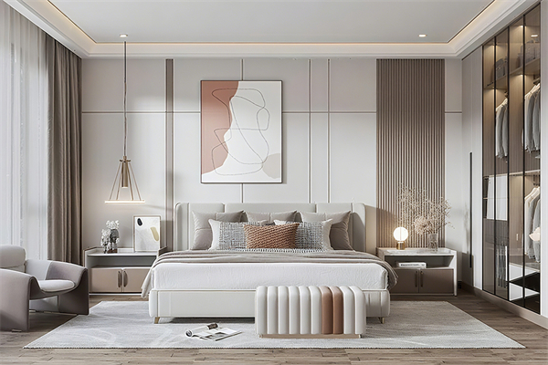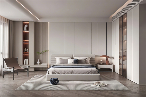 从色彩和材质方面看,木饰面搭配木格栅和金属线条,那效果简直绝了。木格栅能增加墙面的层次感,金属线条又能提升亮度,让整个背景墙看起来更加精致。而且木饰面本身的质感和纹理就是它的一大亮点,选那种木质纹理清晰的,背景墙看起来就特别有质感,跟隐形门啥的搭配在一起,空间的整体精致感一下子就上去了。