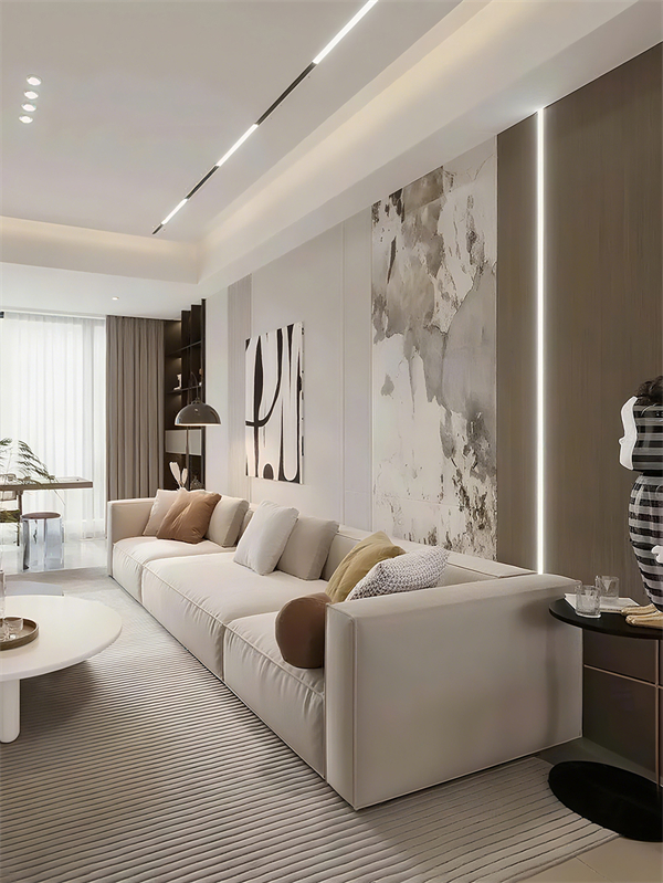 再说回沙发背景墙的尺寸和布局。客厅空间大小不一样,背景墙的设计也得跟着变。要是客厅空间小,你弄个特别大的画或者装饰,那就会显得特别压抑,人待在里面都不舒服,要是客厅空间大,背景墙设计得太简单,又容易显得单调。所以得根据客厅实际大小来设计。