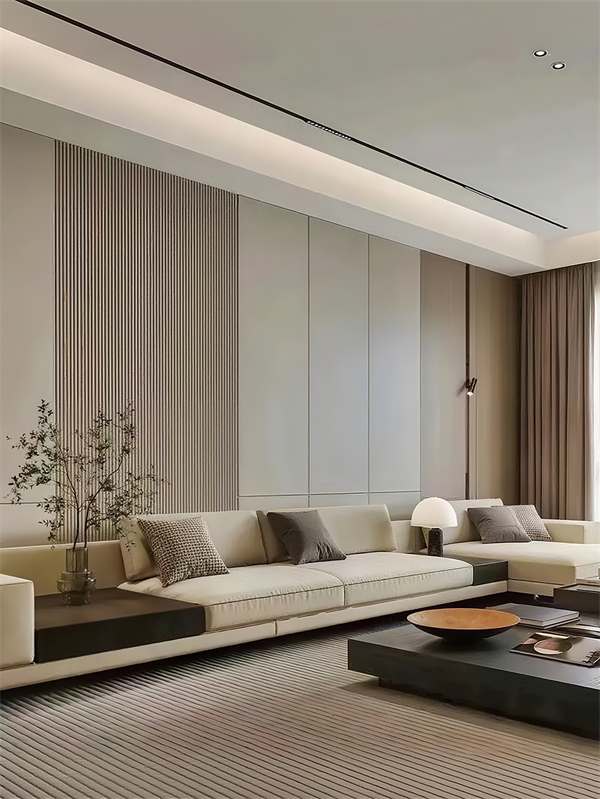现在市场上,木饰面沙发背景墙应该是大部分家庭的标配了。它跟各种风格都能融合得很好,再加上它独特的自然质感,在众多背景墙材料里性价比非常高,要的就是好看耐看的效果不是,它全部具备。而且随着科技的发展和设计的创新,木饰面沙发背景墙也在不断加入新的流行元素和设计理念,以后肯定会越来越好看、越来越实用。下面给大家看下欣赏一下客厅沙发背景墙2025年新款木饰面效果图吧:
