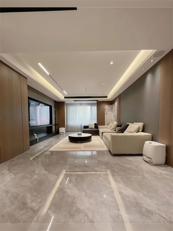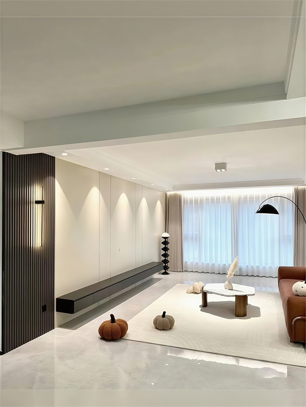 木饰面沙发背景墙可不只是好看,它还很实用。你可以在木饰面墙面上设计悬浮柜、置物隔板啥的,这样墙面就有了收纳功能,家里的杂物都能放进去,客厅看起来也更整洁了。还有啊,木饰面沙发背景墙可以根据你的个人喜好进行个性化定制。不管你是想做半墙设计,还是整个墙面都用木饰面,或者是跟其他材质组合在一起,都能根据家里空间的大小和风格来量身打造,把你的个性和品味展现得淋漓尽致。