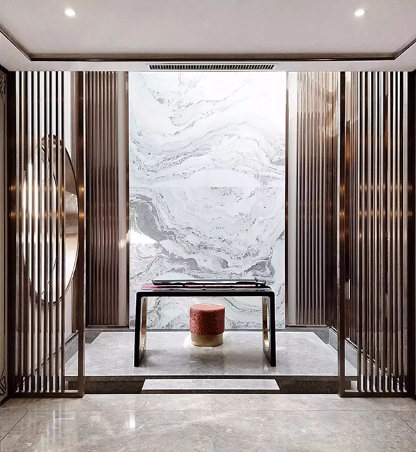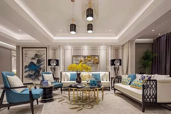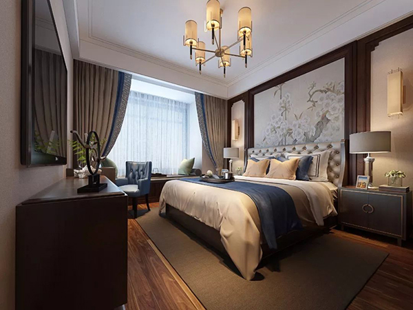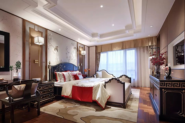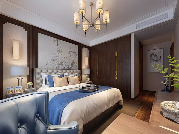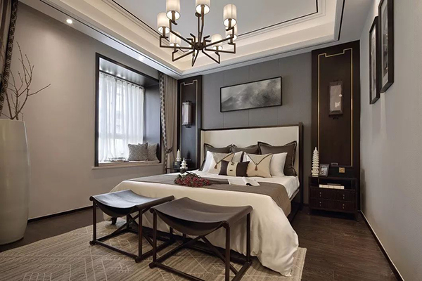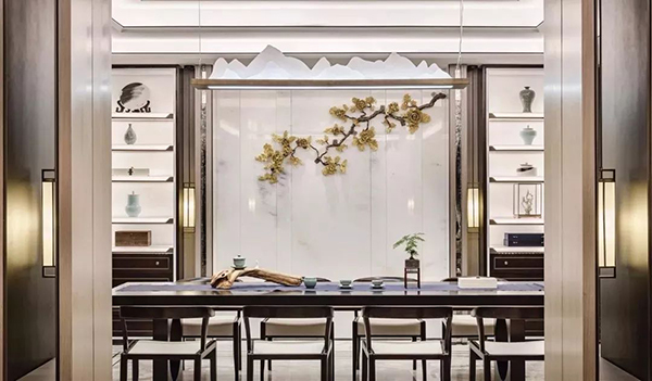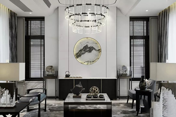 新中式风格的塑造,本质上是契合现代人生活需求与审美偏好的精妙融合。空间会借助流畅且纯粹的线条、精致的墙纸、质感上乘的皮革、独具匠心的烤漆板雕刻造型以及金属等材质的运用,淋漓尽致地展现设计师那极致且独到的设计理念,其造型简约而不失美感,优美中透着古朴;挂画方面多选用山水画,营造出一种余韵悠长的东方意境。