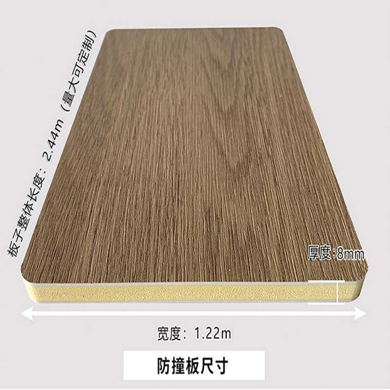 描述 产品详情 防撞板又称竹晶护墙板适用于家装,别墅和高档商业工装室内装修,标准固定宽度为1.22米,厚度有8mm,长度可选2.44、2.6、2.8、3、3.2、3.5米。常用于室内墙面使用,板材表面可以覆膜,常用的有PVC和PET两种覆膜工艺,类型包括木纹、布纹、肤感、金属膜、镜面膜、大理石及波浪纹等 扫码关注我们了解更多信息 相关产品 金刚板-雪晶板 防撞板